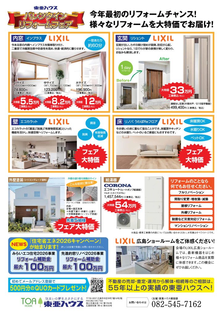 LIXIL広島ショールームにて、バレンタインリフォームフェアを開催します!!