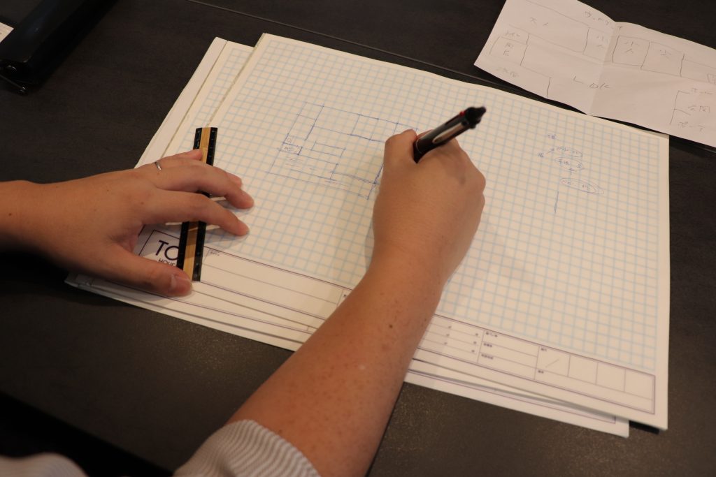 その場で建築士が手を動かしながら、ご家族の声を反映した設計図を作成していきます。