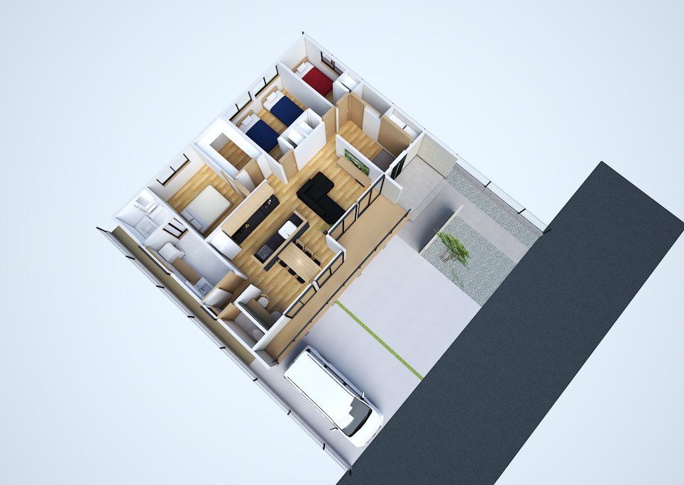 ご家族のご要望をしっかりと反映した平屋のデザインは、実際の住まいを想像させるような完成度で、ご家族の皆様に大変ご満足いただけたそうです。