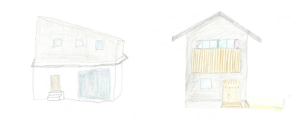 K様ご家族に続いて参加いただいたN様ご家族。小学生のお兄さんと妹さんがそれぞれ外観を描いてくれていました。