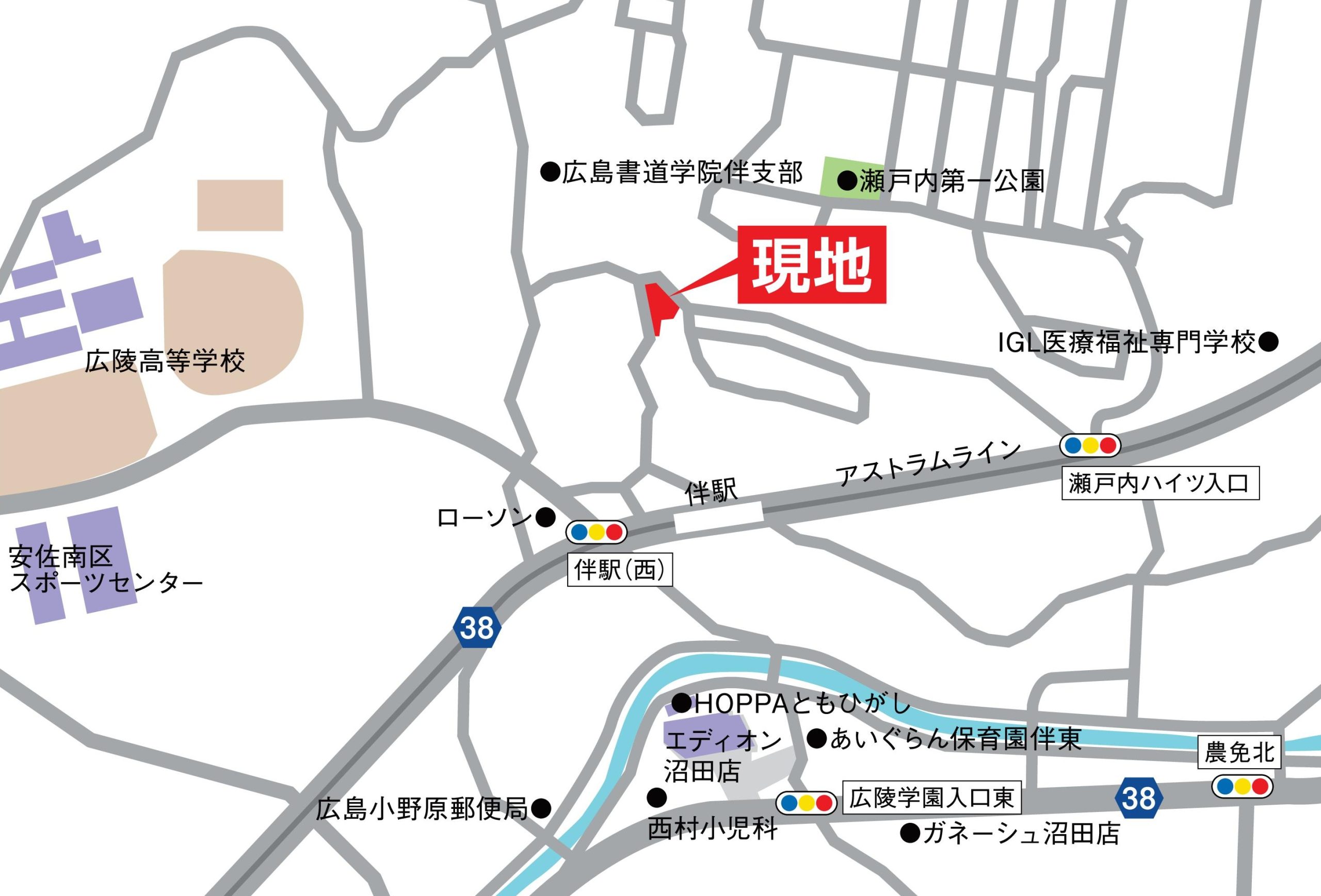 アストラムライン伴駅徒歩3分、フォーブルバス瀬戸内ハイツ中バス停徒歩12分