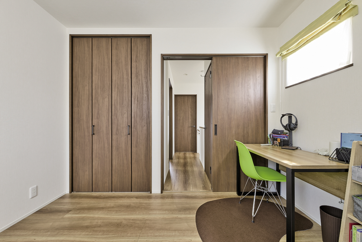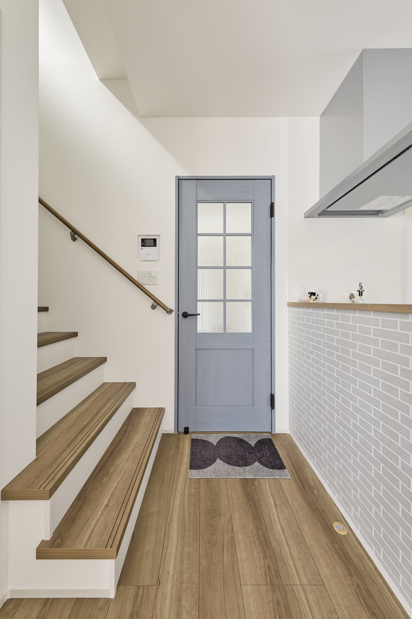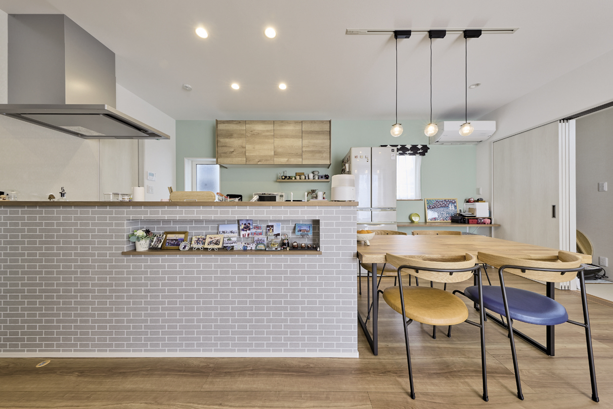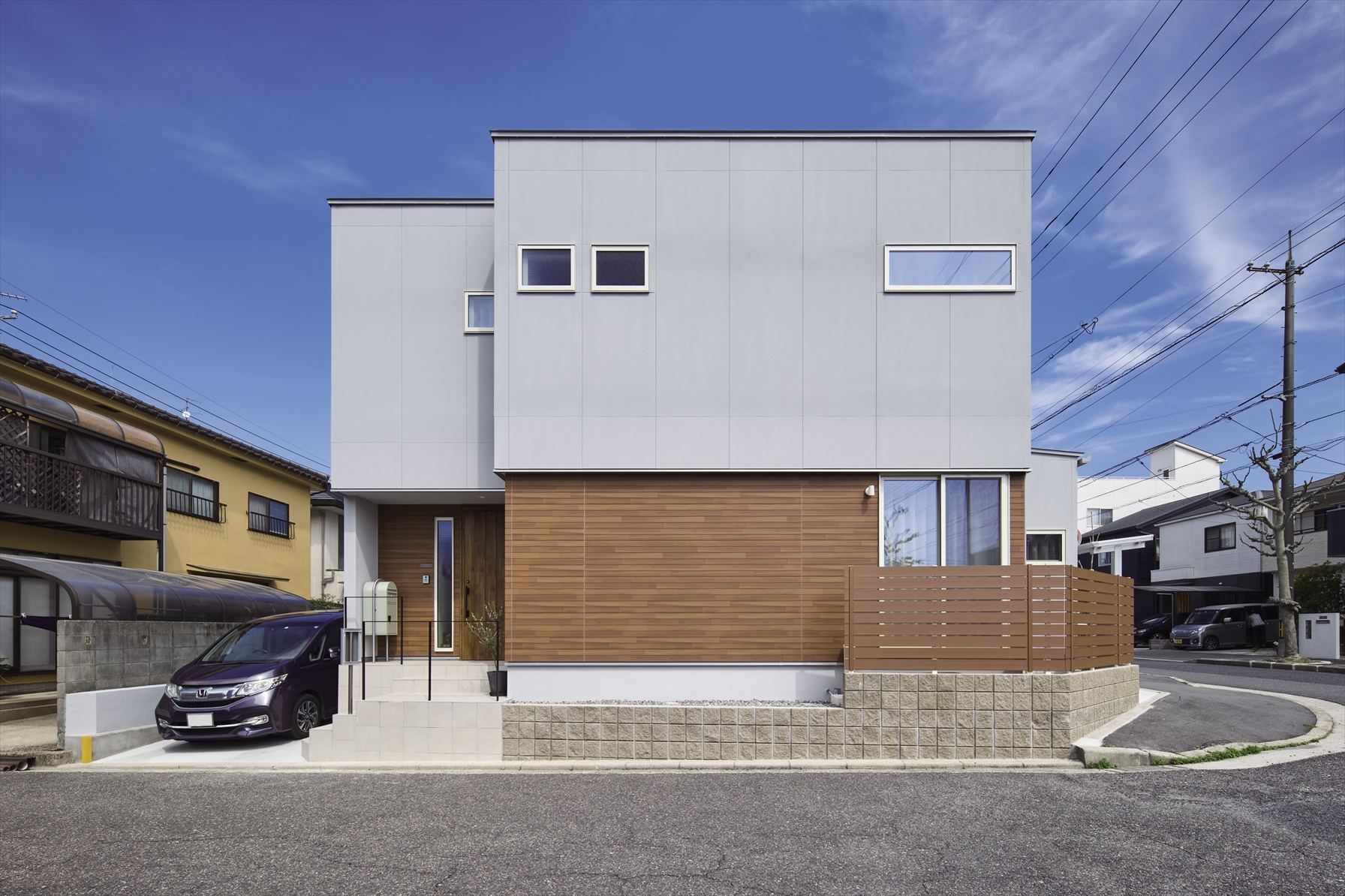子どもが成長し、生活時間のズレを感じてきたN様ご夫妻。「親子ともに独立した空間や時間が欲しい」と、分譲マンションから一戸建てへの住み替えを決断しました。見つけた土地は狭小地ながら利便性が高いため駐車場は1台分とし、敷地の有効活用を最優先。LDKを家族のちょうどいいサイズに収め、奥にギターの練習など、家族がさまざまに使える和室を設けました。水廻りは1階に配することで、日常生活は1階で完結できるようにし、2階は家族それぞれのプライベート空間としました。また、廊下がほとんどないので動線が短くて家事も楽になり、家族みんなが快適に暮らせるようになりました。淡いグレーと木目のツートンの外壁や高断熱・高気密など、デザインや省エネにもしっかりとこだわっています。